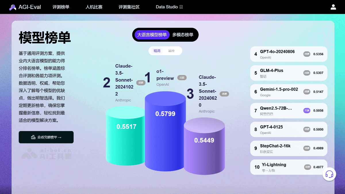 - 官网地址:agi-eval.cn